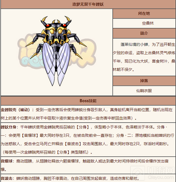以上便是关于造梦无双千年蝉妖技能的说明,希望可以帮助到你们,快去玩一局游戏体验一下吧!