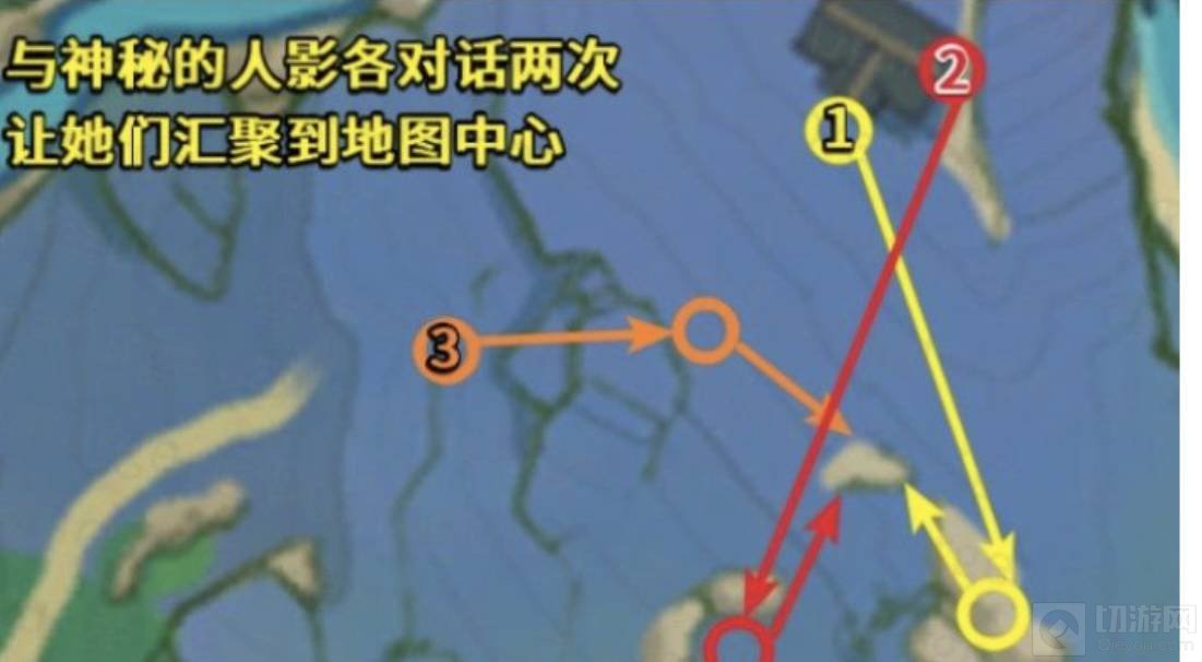 1、荒废神社继续调查的完成方法是找三个人影对话两次,让她们汇集到地图中心。