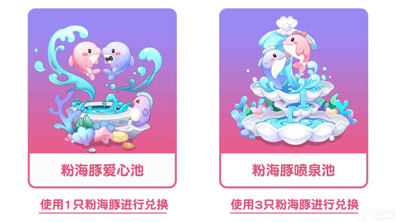 【8月4日05:00-8月24日23:59】,限时传说鱼粉海豚将出现在阳光沙滩,如果有幸在晴朗的白天与它相遇,记得去大力宝藏阁兑换两款传奇家具!