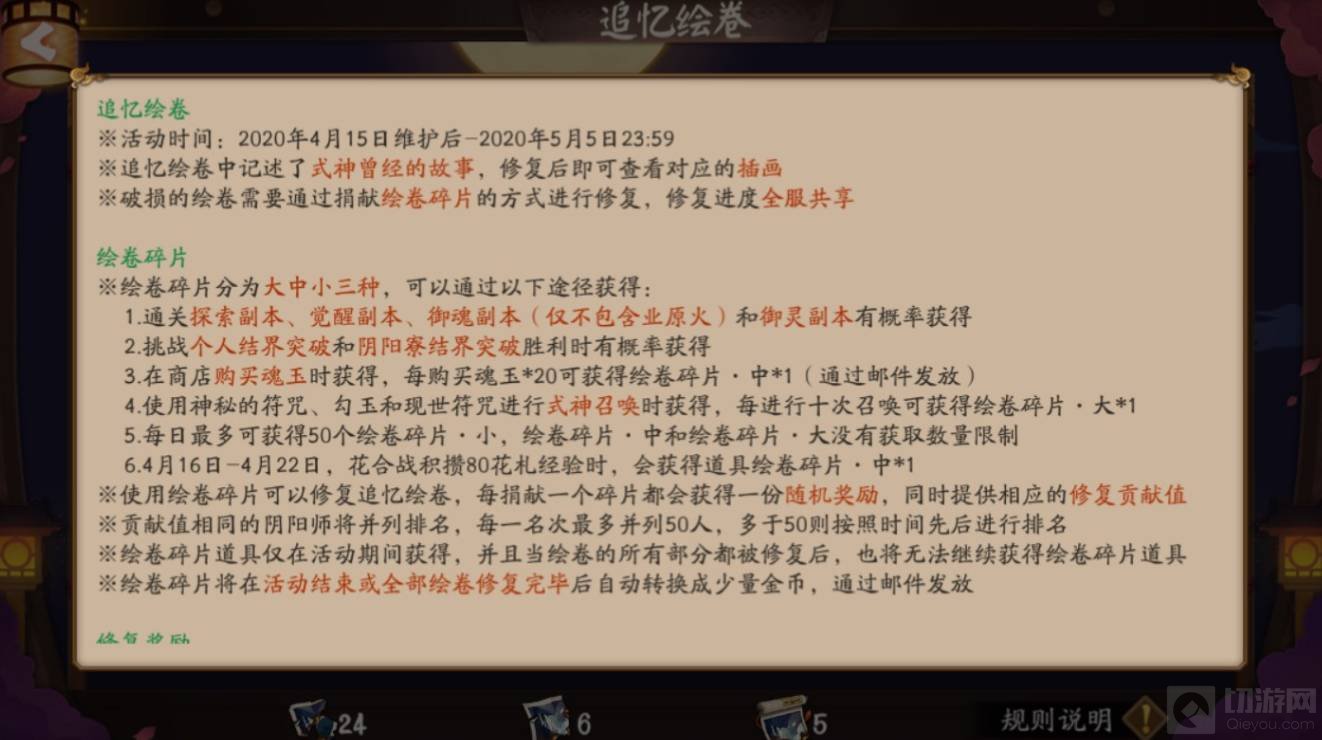 1.在活动期间,参与游戏内的各项玩法,就可以获得绘卷碎片道具。