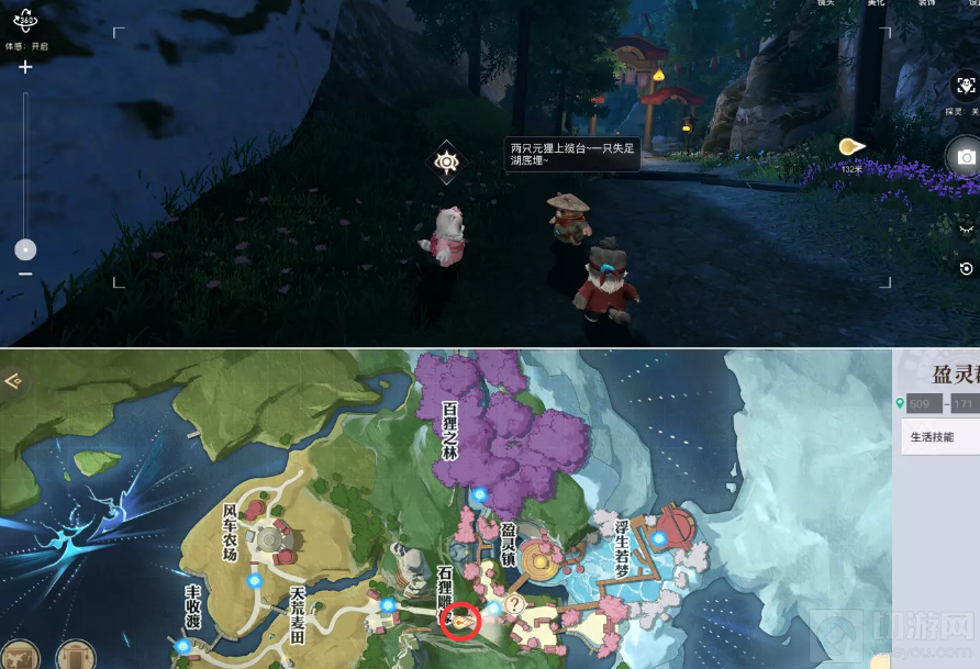 1.夜晚,盈灵509-171和三只小元狸对话后开探查后在494-178点线索