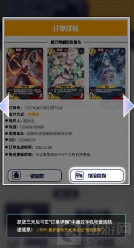 1、购买任意档位的每月礼包,都会免费获得快递券的道具卡。首先要你要获得游戏内的虚拟卡牌,第一步在【邮寄卡牌】界面,选择三张心仪的虚拟卡,点击【发送订单】,届时就会消耗掉一张快递券。