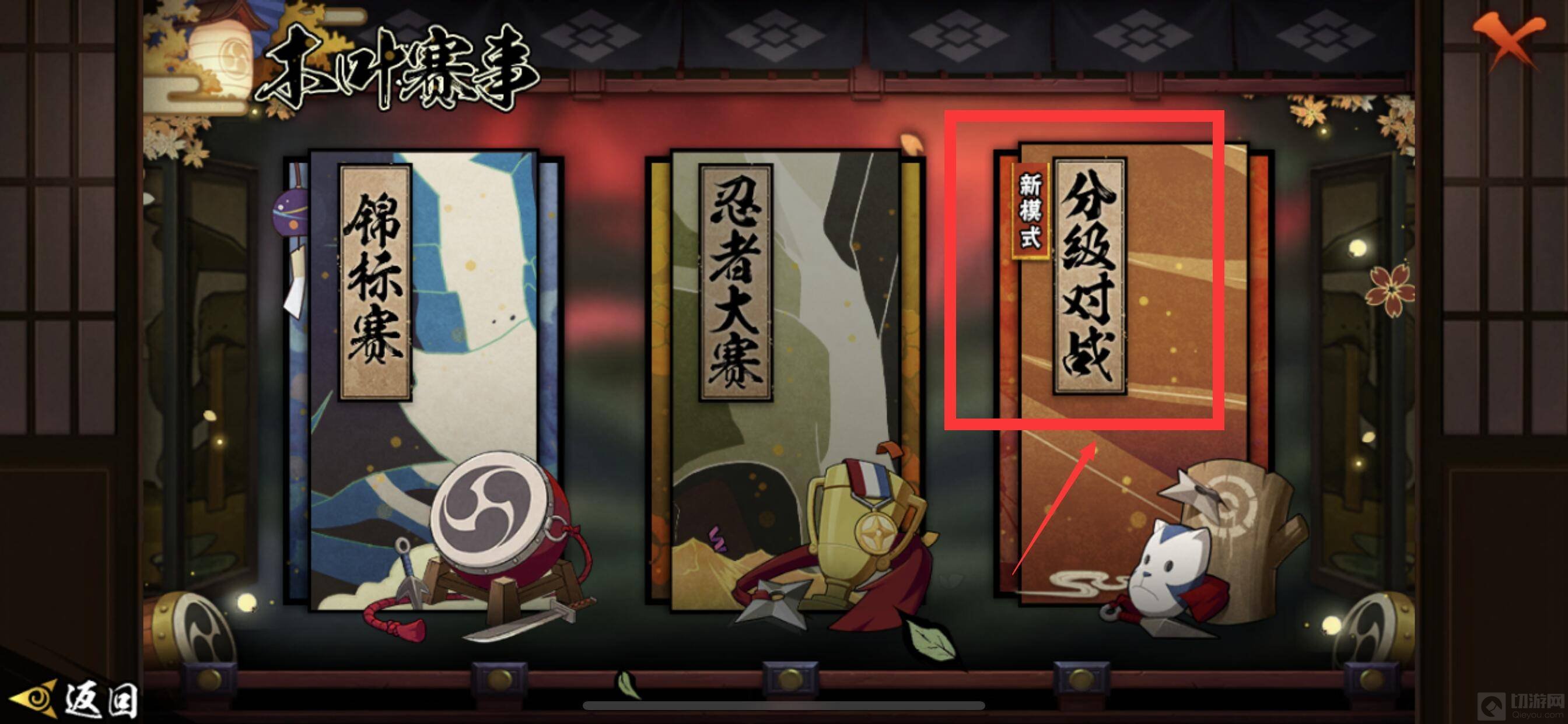 2、在进入到木叶赛事页面后就可以看到新模式分级对战入口了。