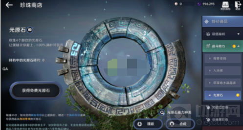 2、完成主线第九章后开放光原石,游戏中装配光原石可以获得攻击、防御、攻速、暴击率等方面的加成,提升大家的战斗力。可通过同品质同部位光原石进行强化。