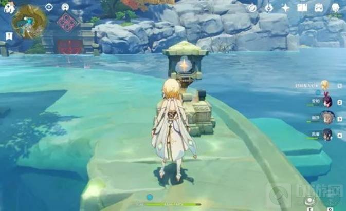 2、开启第一个机关后,水位会下降,露出第二个柱子型机关。需要打碎地图中散发橙色光芒的石头,然后会出现一个小星星跟随玩家。