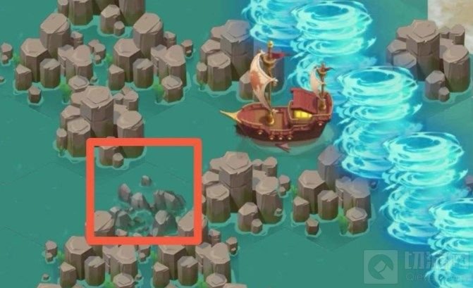 3、注意上图这个位置,有个小礁石是可以直接撞破的,通过这里去地图左上角。