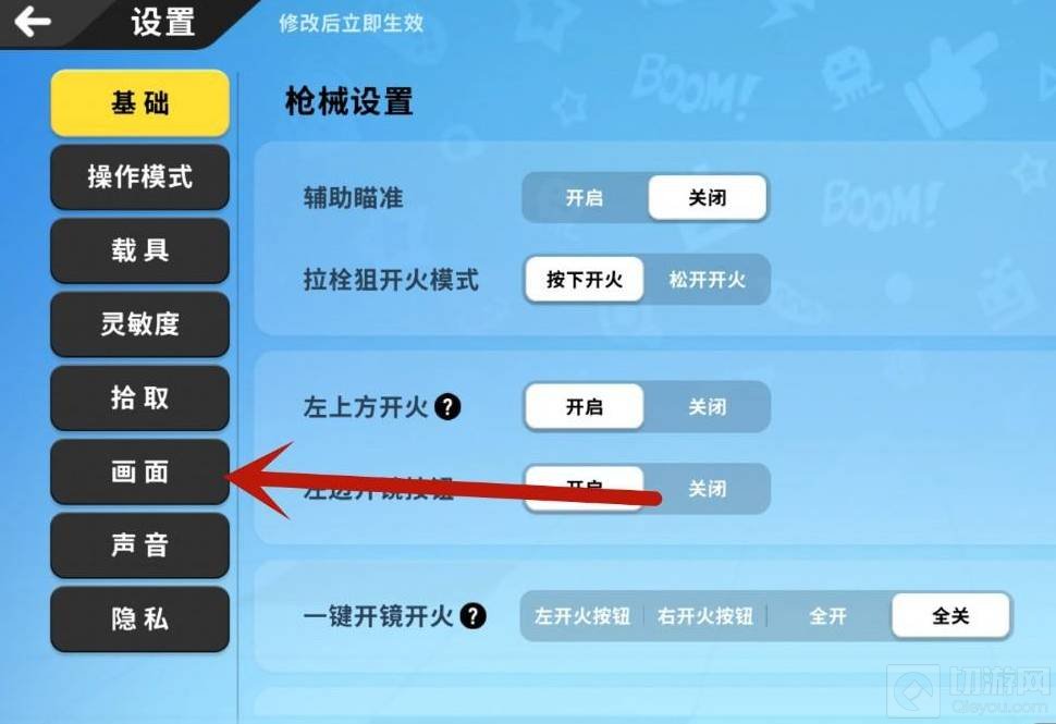 3、接着点击画面选项。