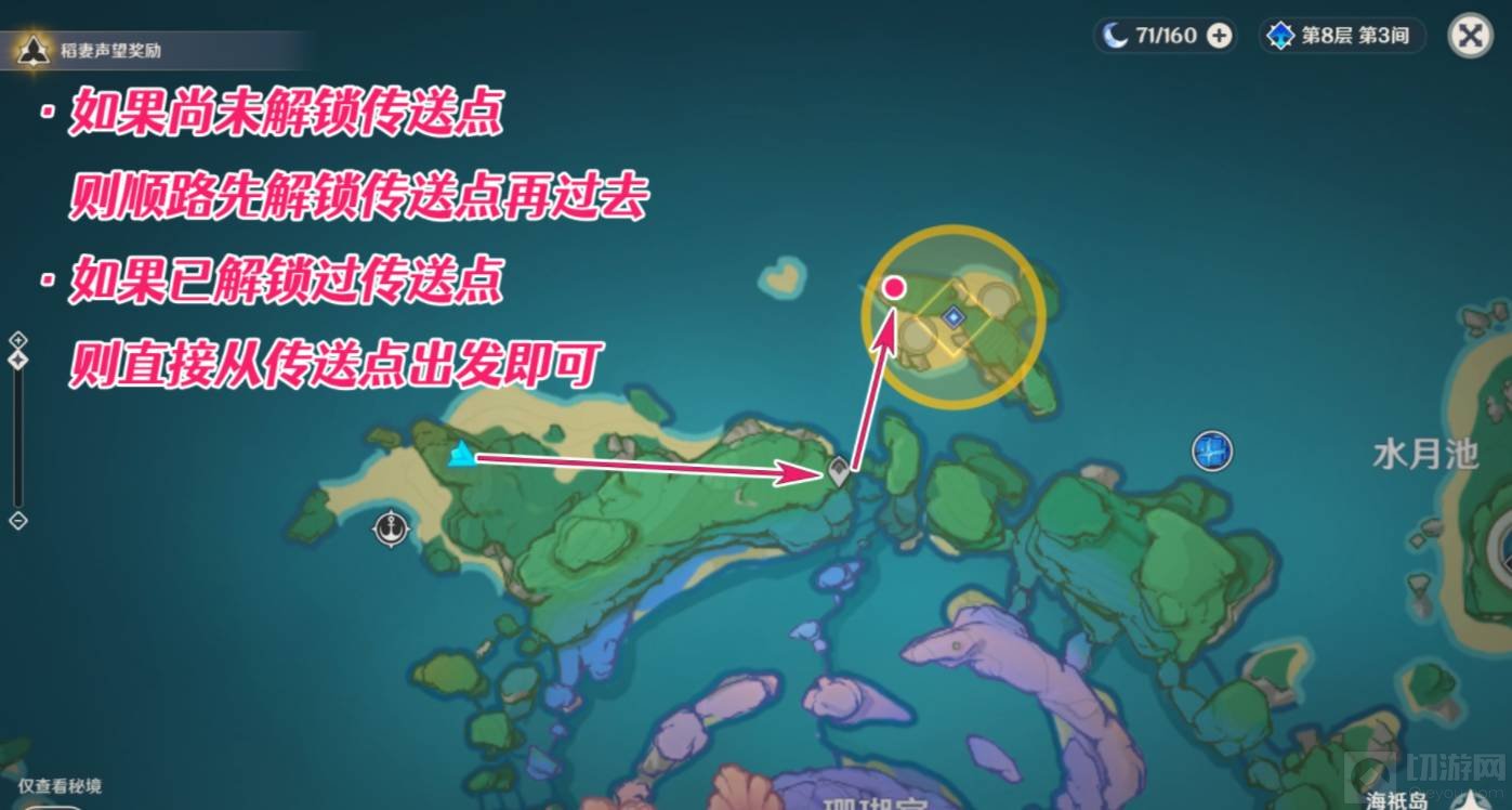 海祇之鳍位于海祇岛地块的最北边,从地图上可以看到两个圆盘状的东西,如果已经解锁了传送点,直接从传送点出发过去即可: