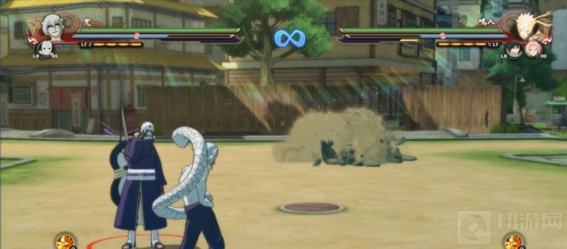 六、当攻击值累计到满值,按下组合键OOO=使出,和面具男带土一起辅助攻击。