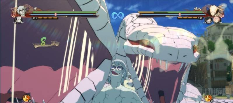 二、药师兜是在龙地洞学习的仙法,连攻会召唤出白蛇攻击,按下方向键和=普攻键使出不同连招。