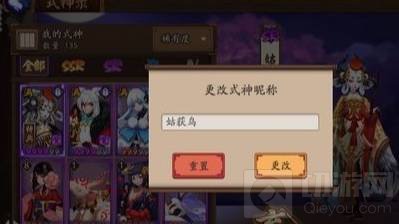 3、接着点击姑获鸟的名牌,弹出“更改式神昵称”的窗口。