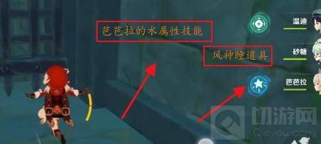 4.接着使用风神瞳“道具”,释放芭芭拉的“水属性技能”。