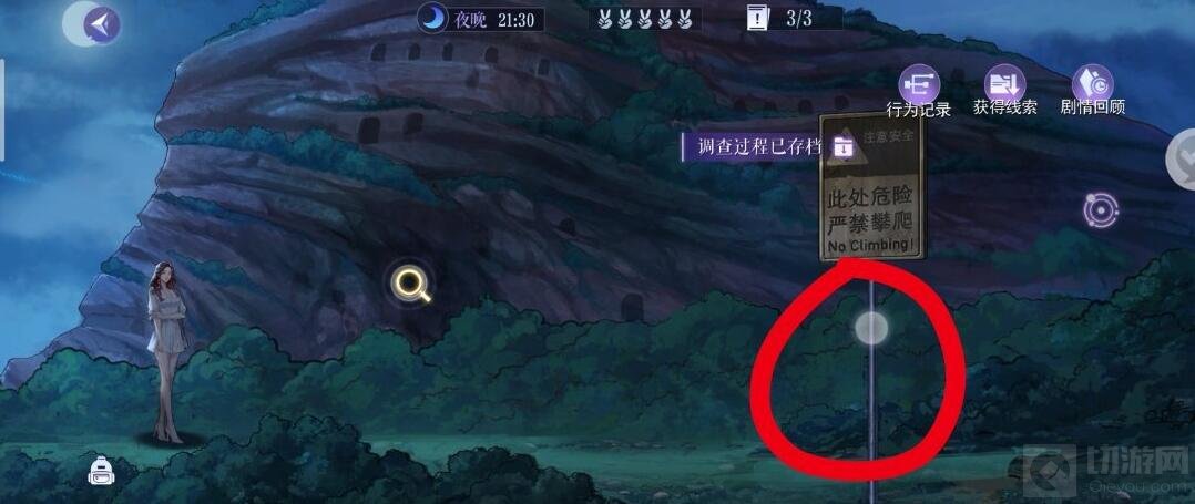 3、进山洞前有个隐藏点警告牌,进山洞出来就点不了了所以务必在右侧粉红提示标出来时就点
