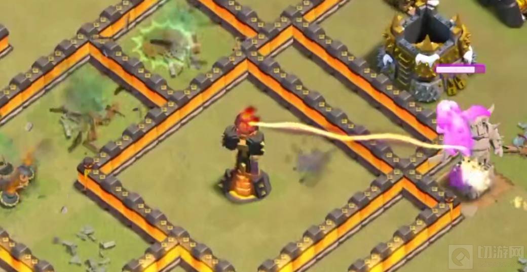 1.1天鹰火炮180单位触发,所以前戏完毕以后,再用闪电地震干掉两个建筑物,就可以等挨炮了。龙宝宝打几个靠边建筑物,闪电地震,鸟炮触发,继续闪电地震,下剩下龙宝。或者直接闪电地震,迅速下龙宝,留下4—5龙宝收尾,打法看个人习惯。