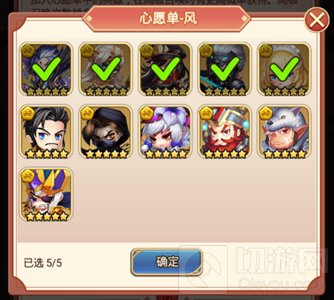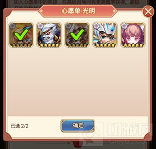 2、心愿单这个游戏内容中玩家可以每个属性都选择5个角色放入,光暗可以选择两个。
