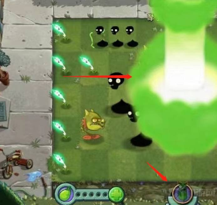 3.到了最后的僵尸比较稍微厉害一点,如果阻挡有些困难就需要使用黄瓜植物,因为黄瓜爆炸成一个巨大绿色蘑菇形状威力超级厉害,可以直接炸死周围僵尸。