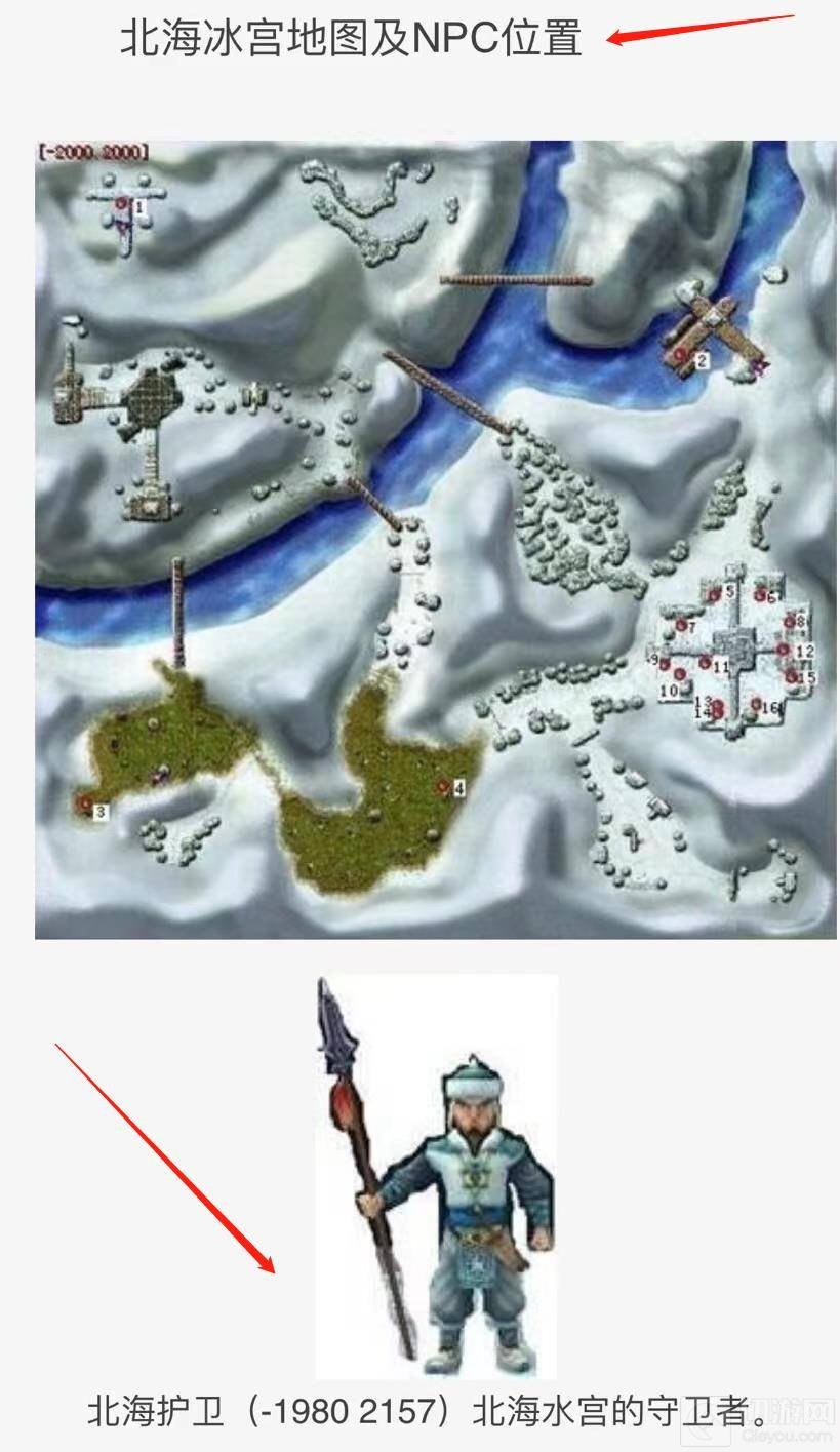 3、还可以在北海冰宫护卫NPC处领取精力。