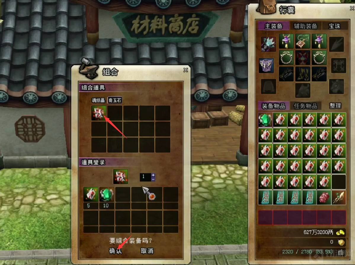 1.首先先前往热血江湖的材料商店,进行合成中级奇玉石,每颗需要5个初级奇玉石和10个初级魂结晶,选择合成的数量后点击确认。