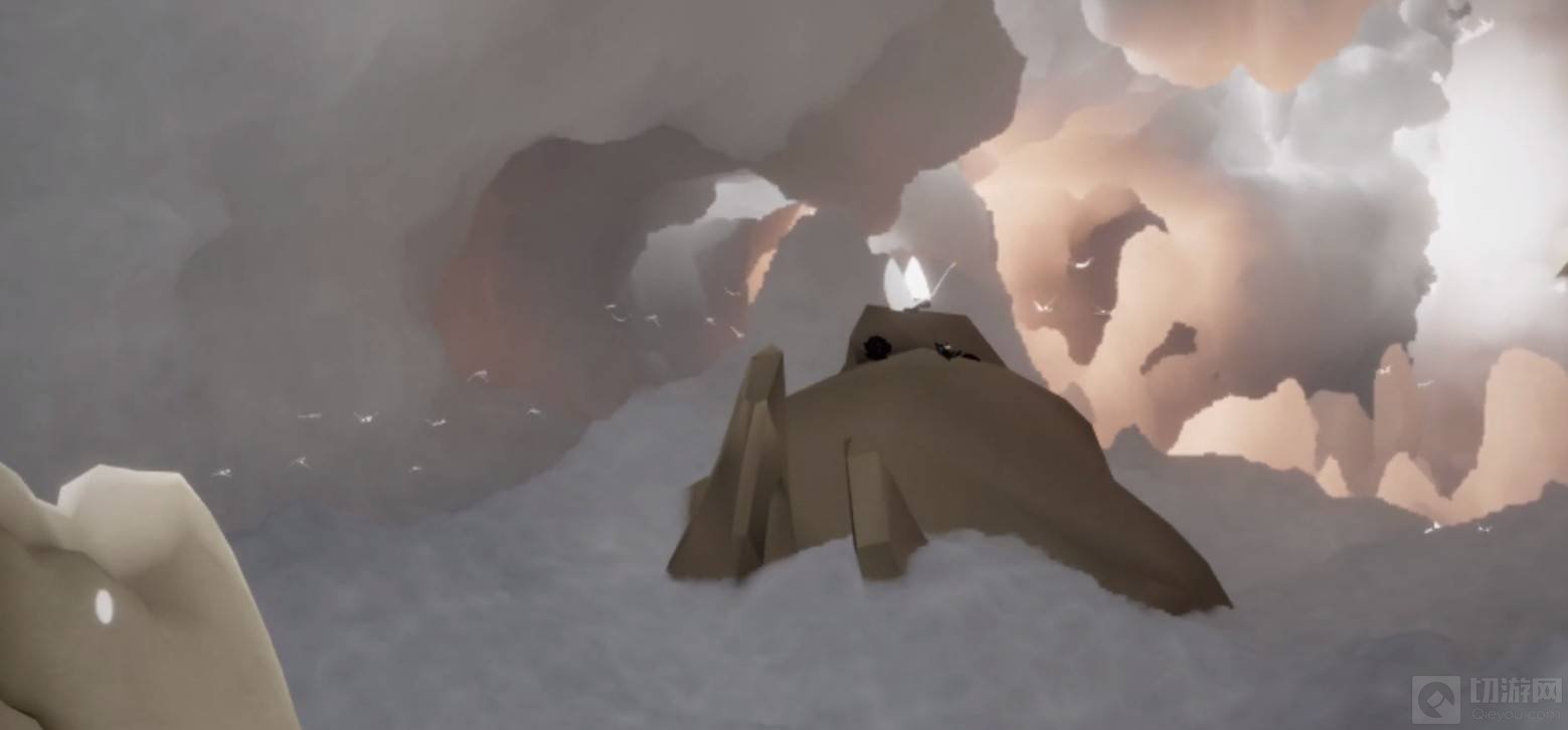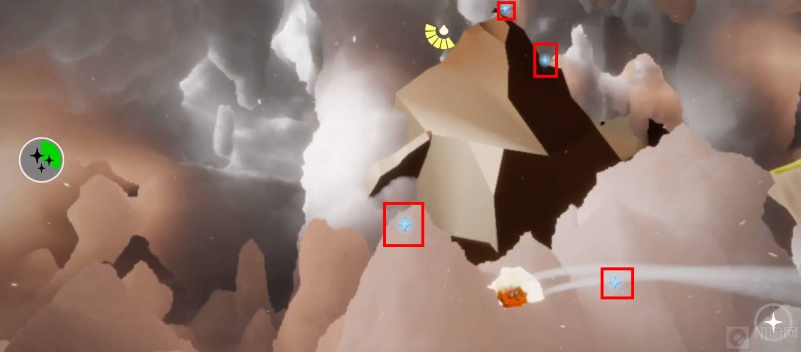 7.第二处解决后,我们接着往前方云柱的后面飞,翻过云层就可以看到第三处黑暗植物的位置。