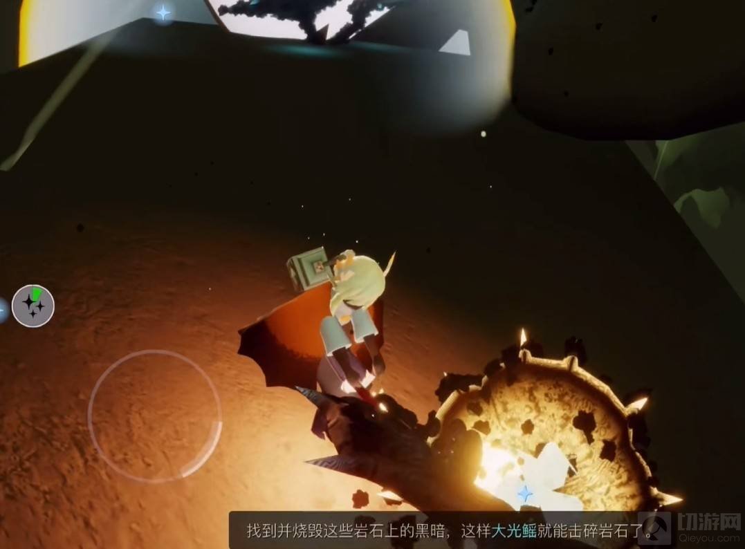 4.烧掉石头和光鲲身上的黑暗植物,这时会有文字提示任务的完成方法。