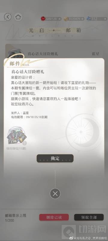 1、今天在邮箱可以免费领取一组第15期真心话大冒险牌,剩下的三组需要用在购物→五区→迷境,用【星旅币】兑换,当期兑换三组只需【1800星旅币】;
