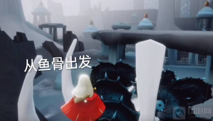 一、首先来到雨林神殿前面的那个图,从有鱼骨的地方出发,一直飞到鱼骨正对面的山洞。