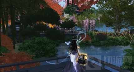 前往少侠的家园,站在一角岸边,浓郁的绿意围绕着小池塘,好像侧耳便能听到虫鸣蛙叫。远处的紫藤萝随风隐约飘摇,仿佛林间精灵现身舞蹈,转过一个弯,清幽的石板桥边栽满翠竹,?连绵的美景引人不断深入向前。