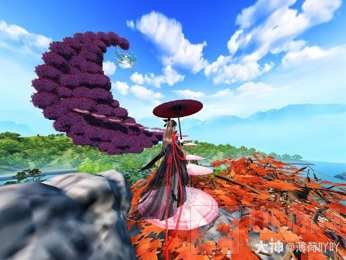 踏着顶顶樱花圆伞步步登高,途经大片的似火枫叶,热烈地随风翻出红浪。在此处驻足,暗紫的巨大弦月便映入眼帘,如梦似幻般悬浮于半空,恍若置身仙境。蹬纸伞上行,沿途风景不断流转变换,每个角度都让人啧啧称奇,大饱眼福。