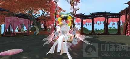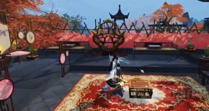 空旷宽阔的高台后,枝繁叶茂的枫树伫立一侧,树荫下的软榻支起粉红帷帐,与火红枫叶相映成趣,也将炙热的阳光悉数隔绝。高低有致的古朴暖风亭占据了四方高台的一边,每一个都装饰有绽开的花簇,精致小巧的灯笼从中垂落,仿佛已经能感到夜幕降临时,柔和灯光带来的舒适温馨渐渐填满心房。