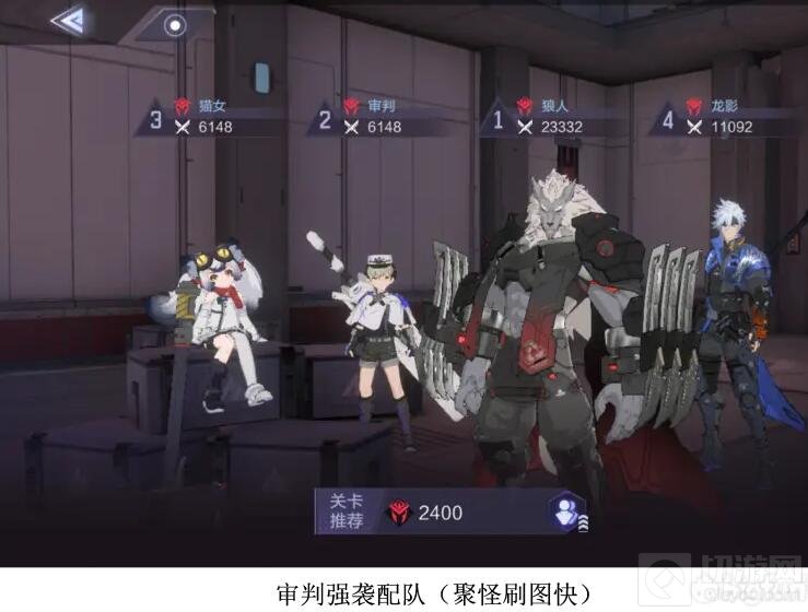3、需注意以上的强袭队伍输出流程需要猫女支援技能释放后,狼人和龙影轮流上场打浮空追击连招,女王和审判的支援技能依据战况进行释放。