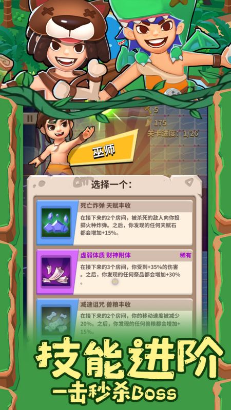 通过灵活的走位与技巧让角色毫发无伤,同时置身于精美的魔幻丛林画面之中,无数的宝藏和成群的敌人在等待着你!