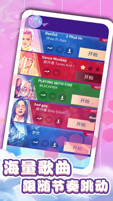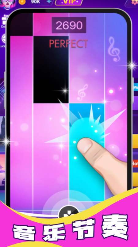 挑战手指极限,体验弹奏钢琴的美妙。只需伴随着音乐点击黑块,不要踩到白块!还不快来玩? !开启钢琴音乐的盛宴,和朋友PK较量,让你的手速超乎常人越来越快! 游戏亮点 全新玩法,让你体验更刺激的游戏快感; 你可以和全球玩家比拼手速; 全新配色方案,彩色代替黑白; 全新音乐,让你体验专业钢琴家的弹奏乐趣; 把自己的演奏分享给你爱的人