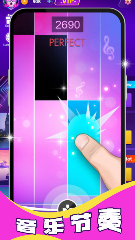 你是否梦想成为一名钢琴大师?聆听一段好听的旋律,跟随节奏点击屏幕中的钢琴黑块,发出优美的音符,串接起来就是一段好听的旋律。是的,就是这么简单!