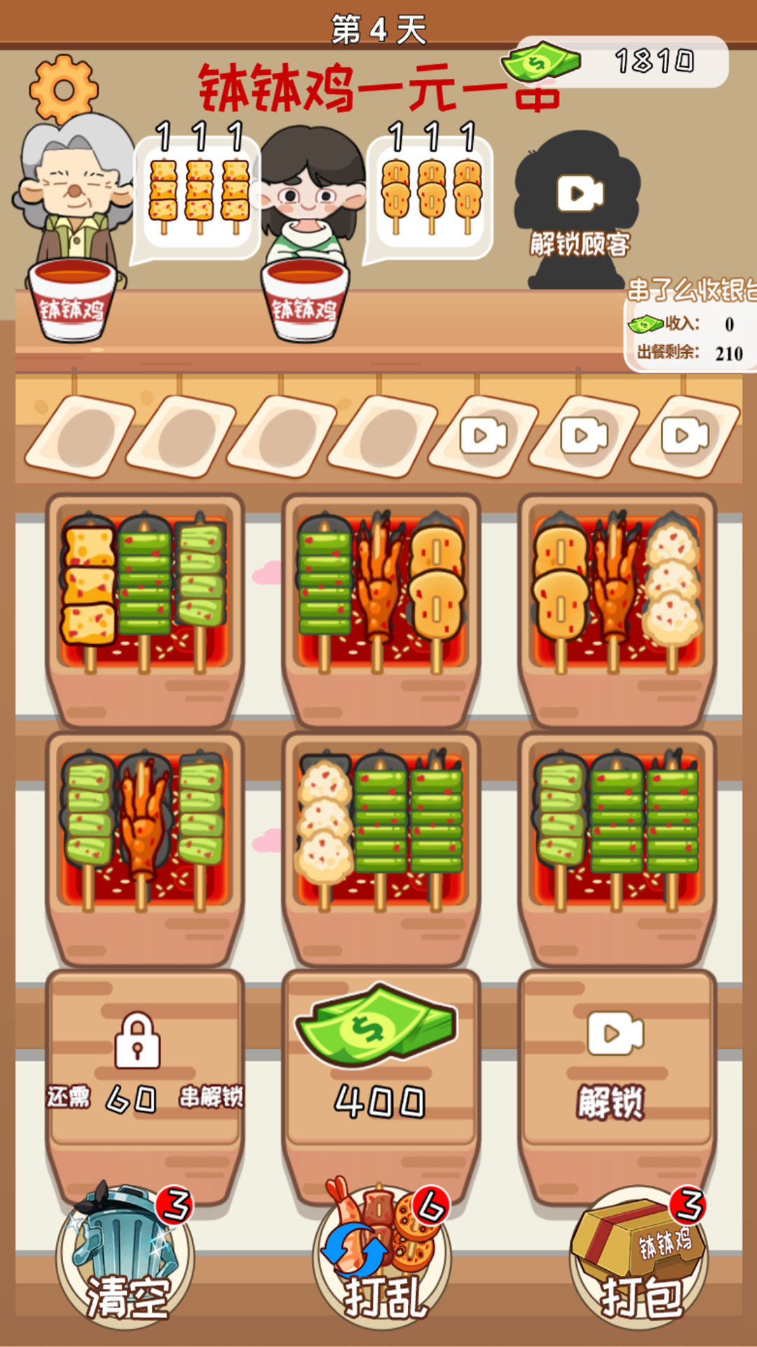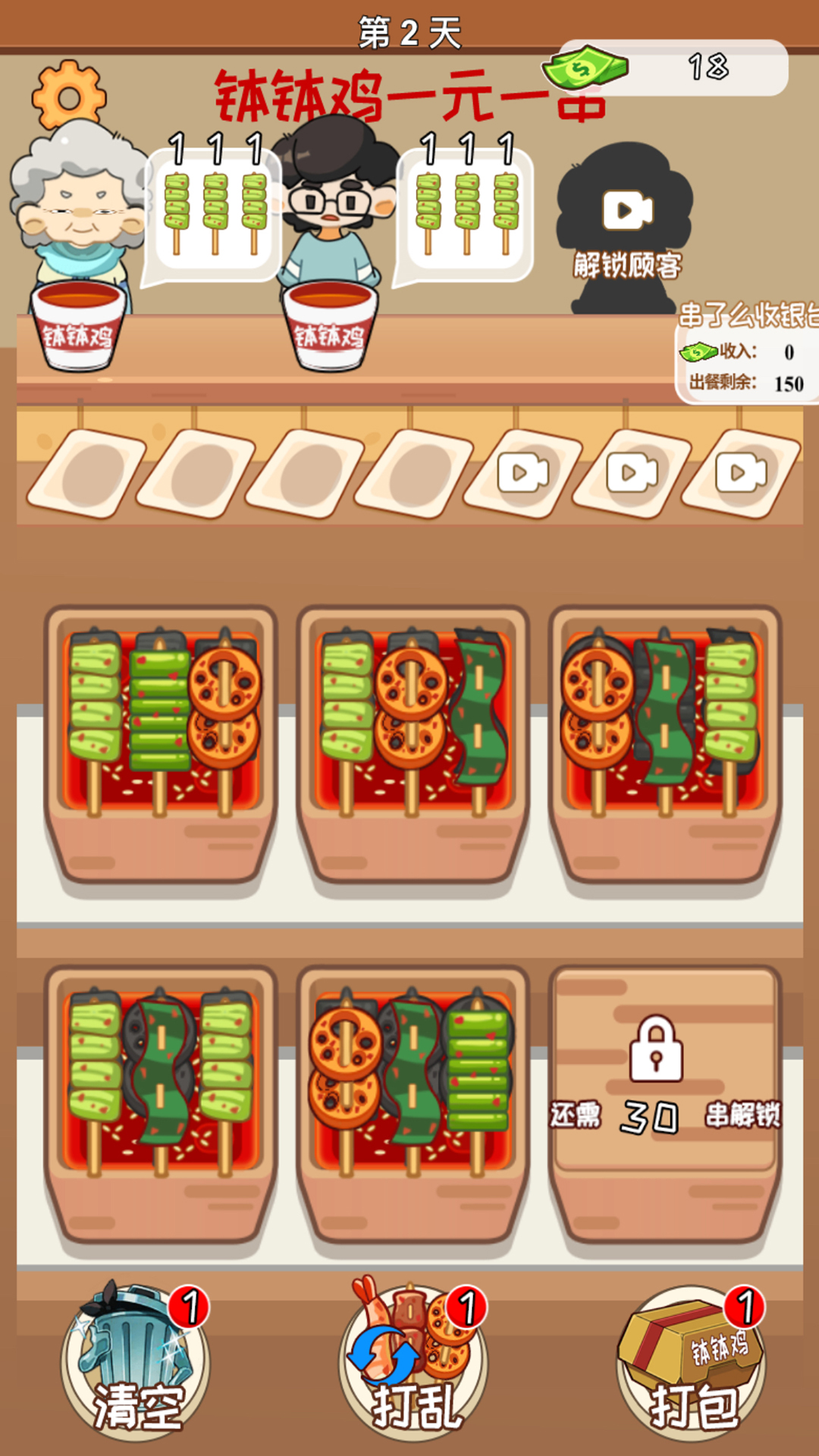 一元一串的钵钵鸡是一款以美食为主题的消除小游戏,玩家将扮演一位街头小吃摊主,专门售卖美味可口的一元一串钵钵鸡。游戏中你需要根据顾客需求挑选新鲜食材,并快速准确地完成每一份订单来赚取金币。随着游戏进展,还可以解锁更多特色菜品和装饰品以吸引更多顾客光临,逐步扩大你的美食小天地,最终成为远近闻名的街头美食达人。