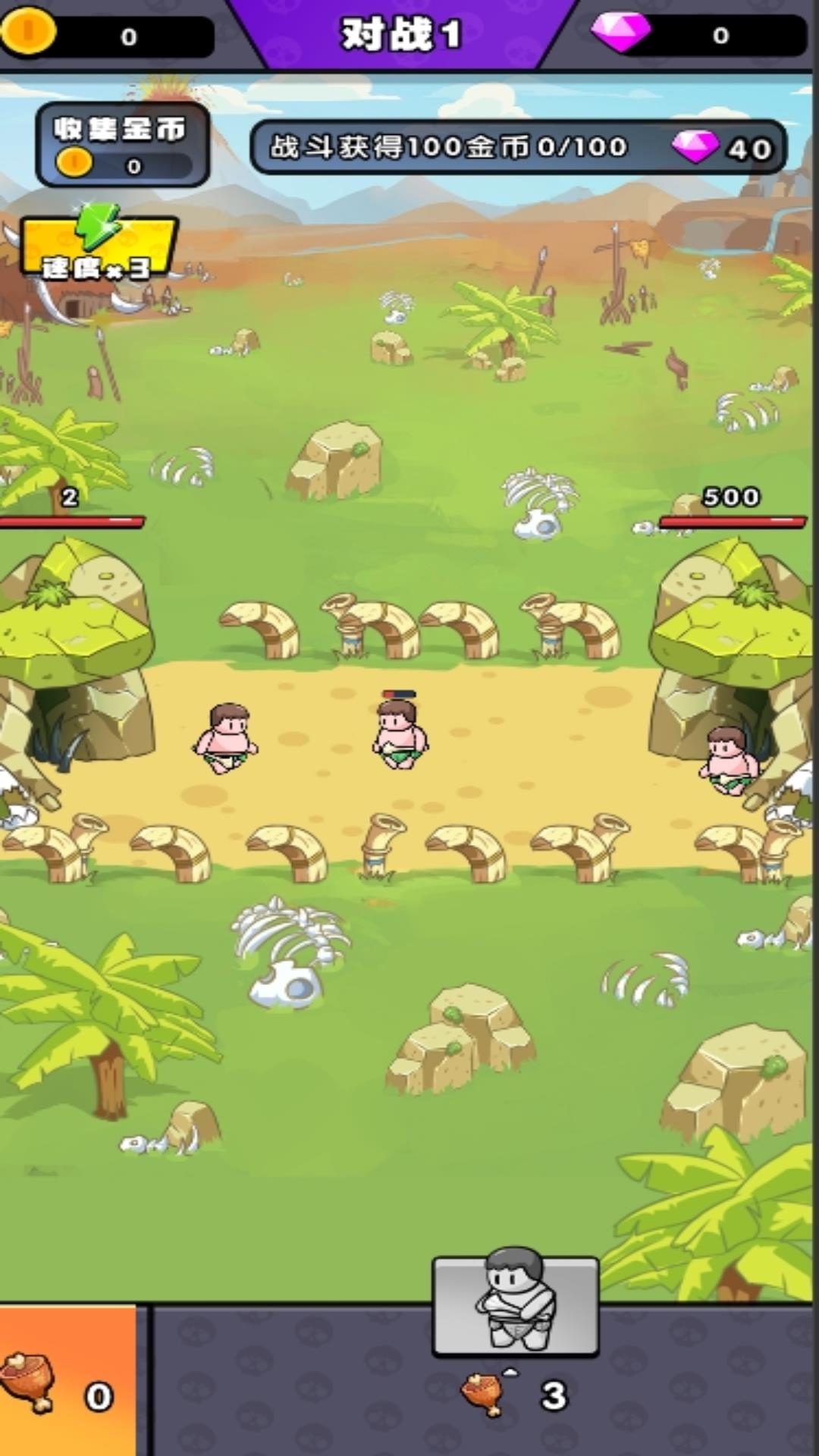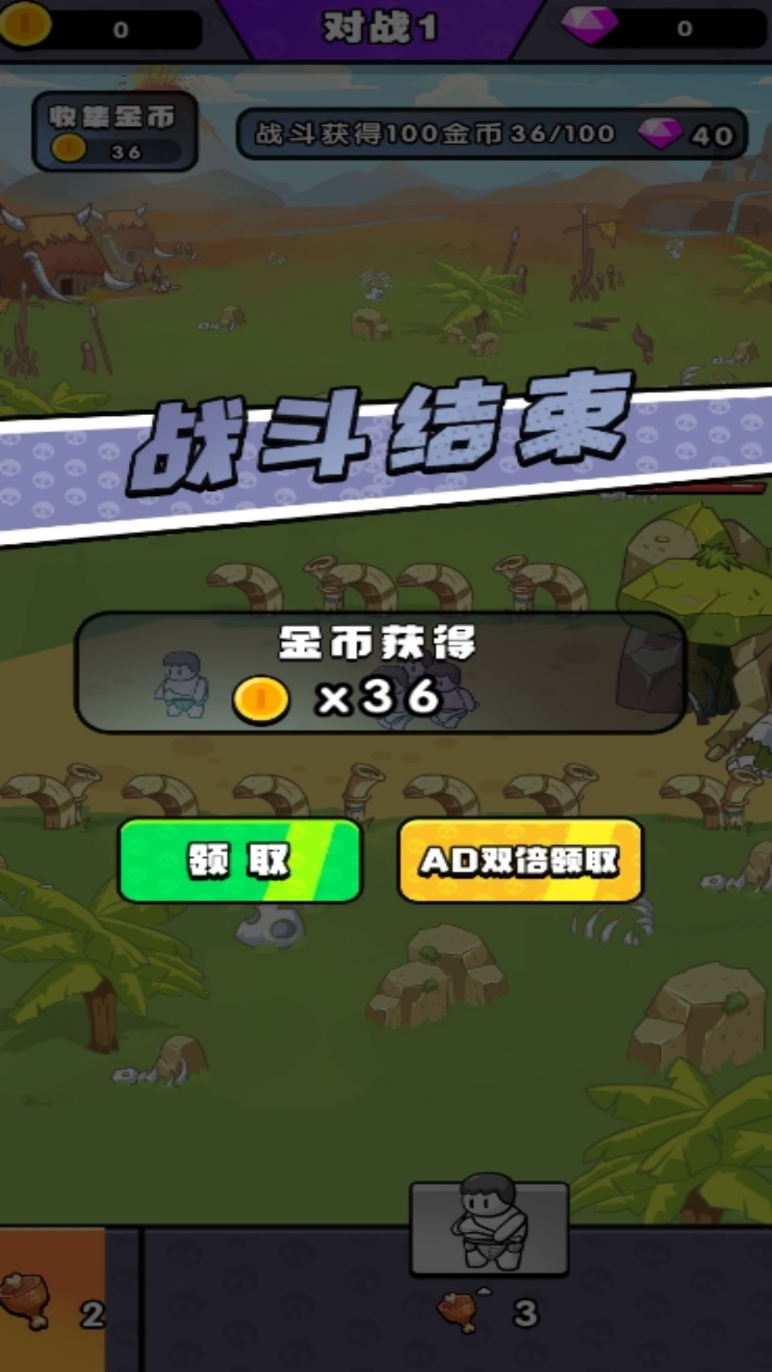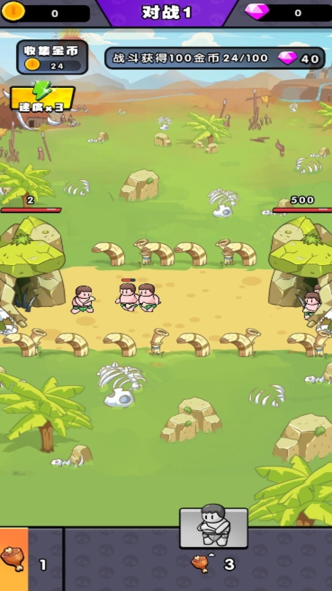 该游戏是一款迷你的战略类游戏。玩家要扮演一位指挥官,在漫长的岁月中,从远古时代到宇宙时代,战胜数不清的强大的敌人。首先玩家需要不断的和敌人交战,在一次次失败中,积攒资源,开发新的兵种,获得更多得食物来增加出兵的效率。兵种之间存在着克制关系,玩家必须根据敌人的阵容,才能见招拆招从而获得胜利。当您战胜敌人后,可以向下一个时代的强敌发起挑战。花费金币在升级界面提高资源的获取速度,研发新的兵种,在战斗时花费资源派出士兵。只有不断的尝试才有可能获得最终的胜利。目前本游戏提供了六个时代,每个时代还有两条不同的时间线,绝对能让您战个痛快!好了指挥官,请您充分发挥您的军事才能以及些许的耐心,在一个个时代中胜出吧!