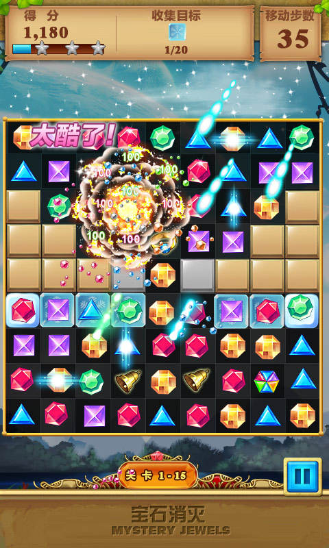 在游戏时间内、空间和道具范围内,尽可能的收集更多的宝石元素,完成解锁,收集各种宝物,开心每一天,一起玩宝石消消乐吧!