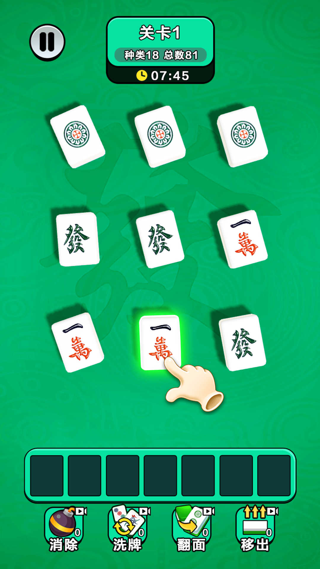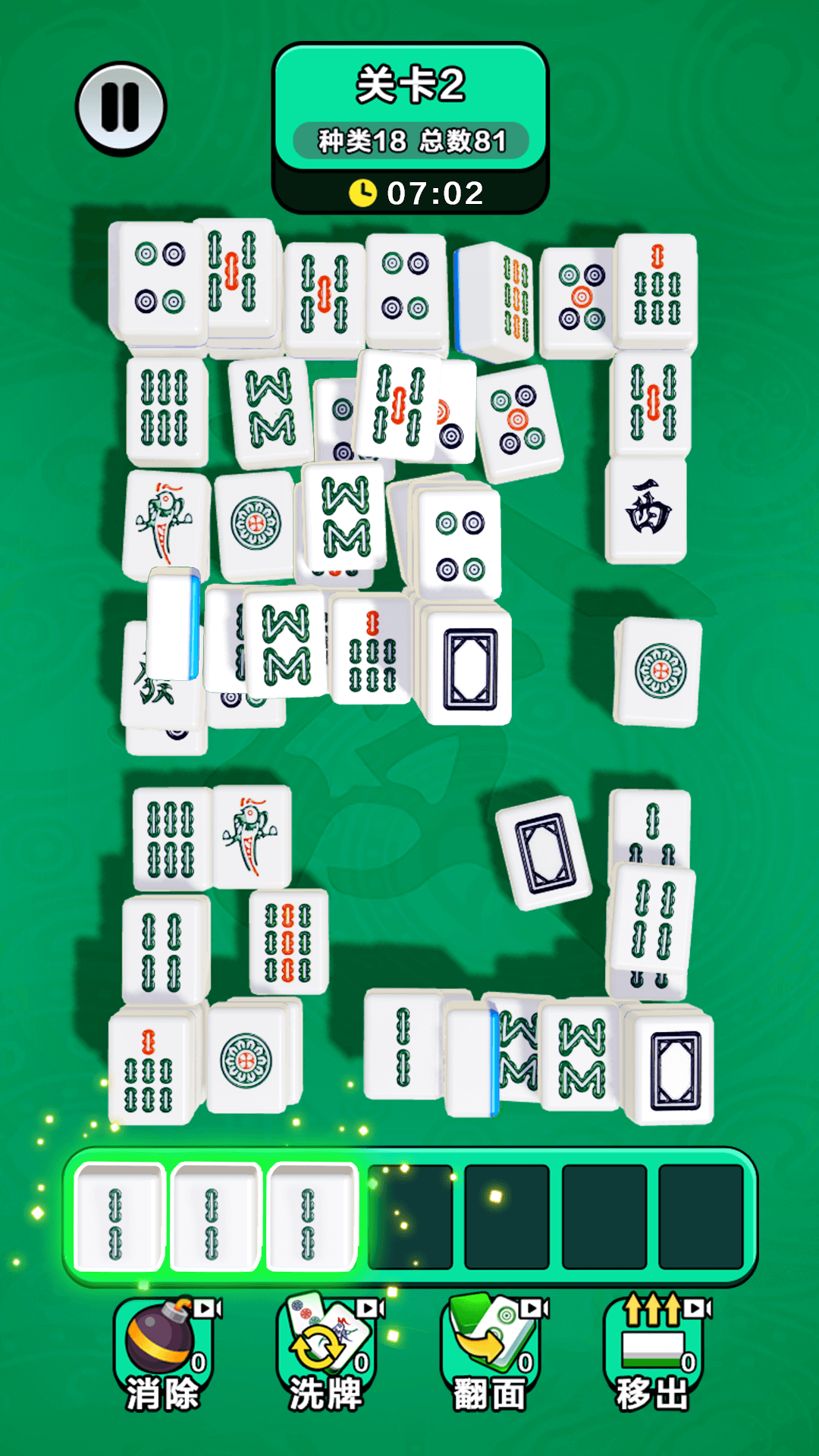无敌对对碰是一款充满策略与乐趣的消除类益智游戏。玩家需要运用智慧和技巧,点击三个相同的麻将,从而消除它们并获取高分。游戏以其简单易上手、玩法多样、挑战性强的特点,吸引了无数玩家的喜爱。游戏强调策略性玩法,玩家需要仔细观察游戏局面,合理规划消除顺序,才能取得更高的分数和更好的成绩。游戏采用精美的画面和音效设计,为玩家营造出一个充满乐趣和惊喜的游戏世界。无敌对对碰以其独特的游戏玩法和精美的画面音效设计,赢得了广大玩家的喜爱和好评。它不仅能够锻炼玩家的思维能力和反应速度,还能够让玩家在轻松愉快的氛围中享受游戏的乐趣。