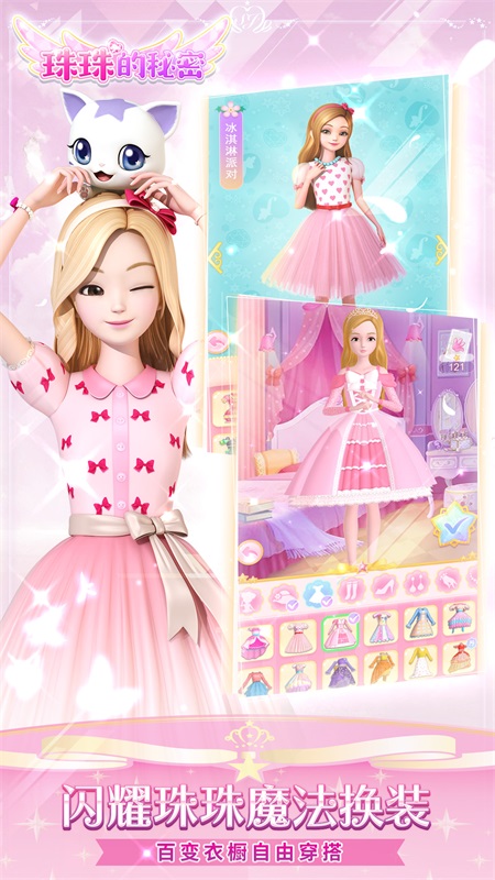 守护珠珠的秘密,成为魔法偶像,拯救童话王国!现在就培养你的专属偶像,开启一系列有趣的冒险!你将进入自由度极高的换装模式,利用丰富的服装部件,为偶像打造百变造型;不仅如此,还可以化身设计大师,为偶像制作梦幻套装;你更可以亲手制作专属卡片,甜美可爱的pose、精美大气的边框,都让你的偶像卡片魅力值爆棚,战斗中轻松击败对手,破除女巫魔咒!快来让你的偶像C位出道吧!