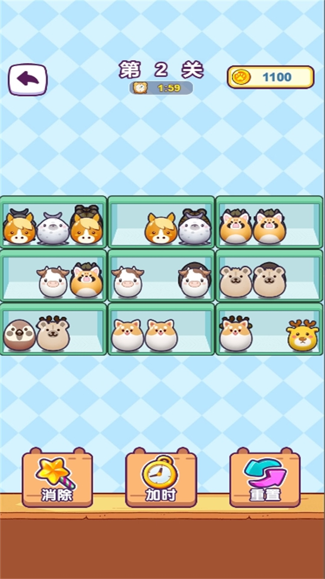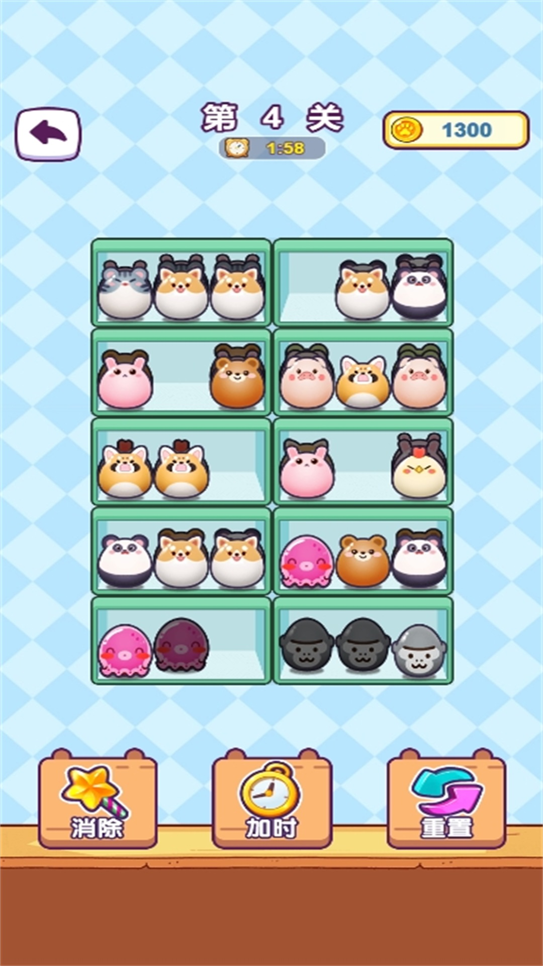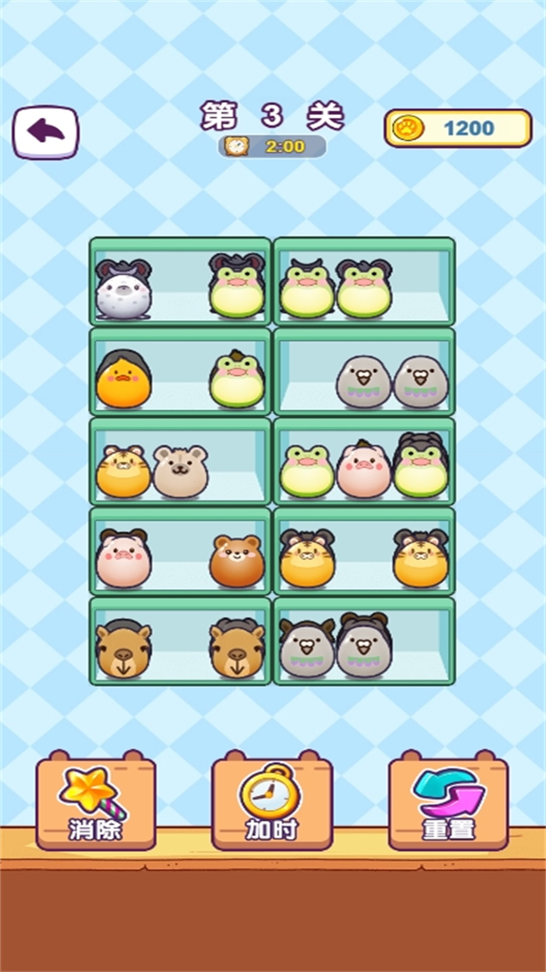 该游戏是一款休闲小游戏,拥有满满一柜的玩具是件多么幸福的事情啊,但是整理起来也是相当的烦人,玩家需要做的就是把满满一柜的玩具都整理好,挪动三个相同的玩具到一个格子中,这三个玩具就会被消除,一个格子中往往不止有一排的玩具,玩家需要把前排的玩具全部挪走,后排的玩具才会展示出来,因为整体的格子数量是有限的,所以一股脑的把玩具全都挪出来不是一个明智的做法。玩家需要发挥观察力以及一点点的逻辑思维的能力就可以顺利的过关了。快来把可爱的玩偶们都收拾好吧!
