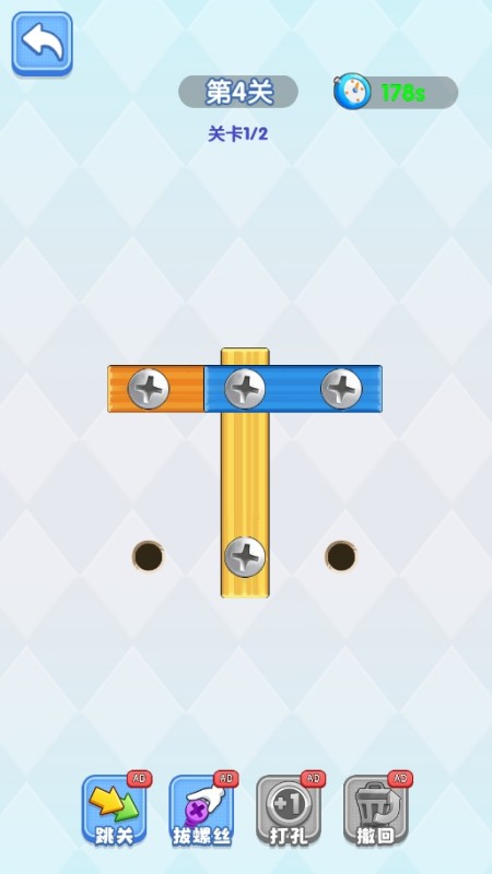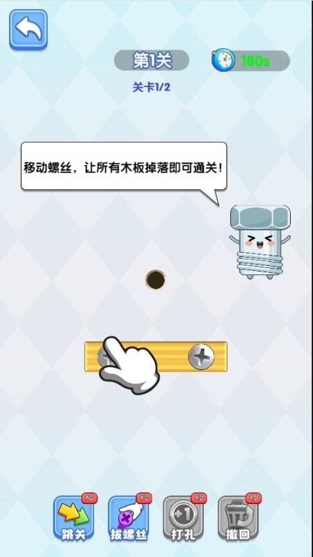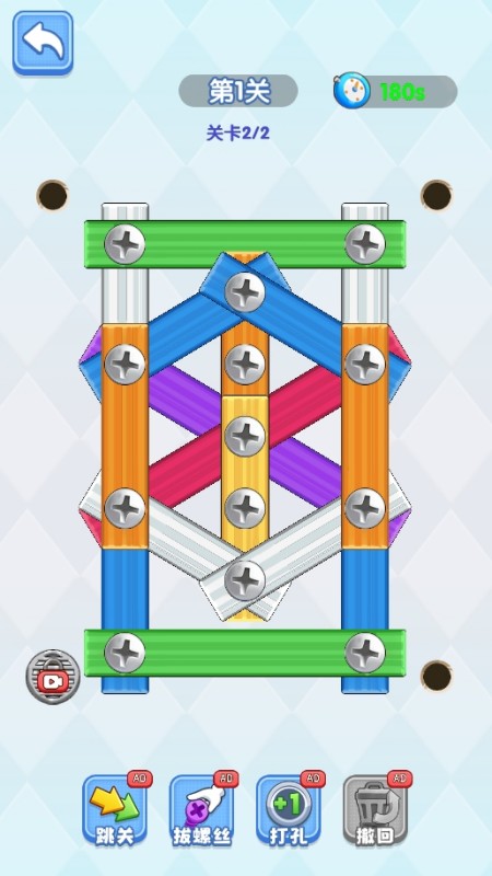 轻触松开相同颜色螺丝,打到正确位置合并同类,以巧妙拆解透明板重叠迷局~通过点击,移动螺丝钉的位置,清除所有固定在板子上的木条; 注意:木条在掉落过程中会随重力等影响,可能会遮挡空的螺丝孔,需要提前预判掉落轨迹!!
