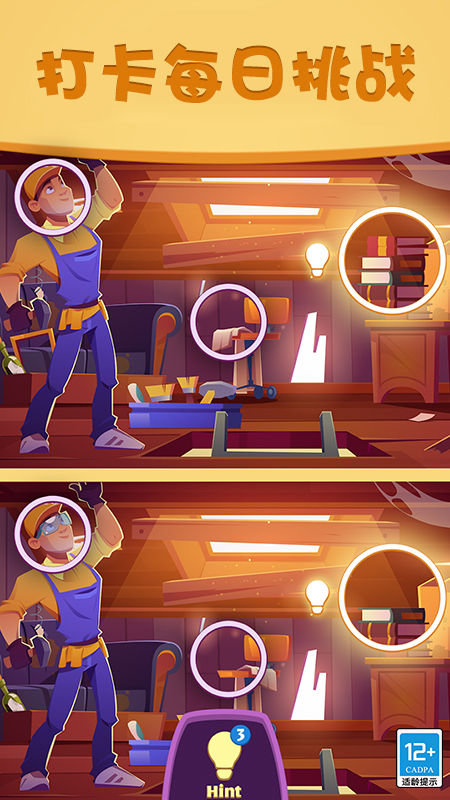 《全员找不同》是一款对比照片,寻找不同处的益智游戏,你的任务是找出两张图片之间的五个差异。睁大你的眼睛,仔细看图片,可以帮助你提高观察力。 探索许多不同的彩色图片,生活中常见的场景,让你沉浸其中,享受乐趣。在享受游戏的同时训练你的大脑! 游戏玩点: 1.有趣的图片,丰富的关卡; 2.10000+关卡,让你不再产生内容焦虑; 3.适合儿童和成人的大脑训练游戏; 4.有趣的图片设计,习以为常中发现不寻常的地方。