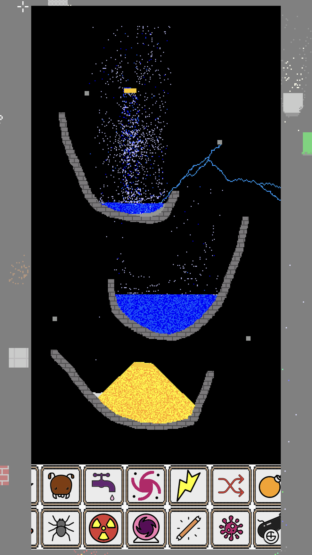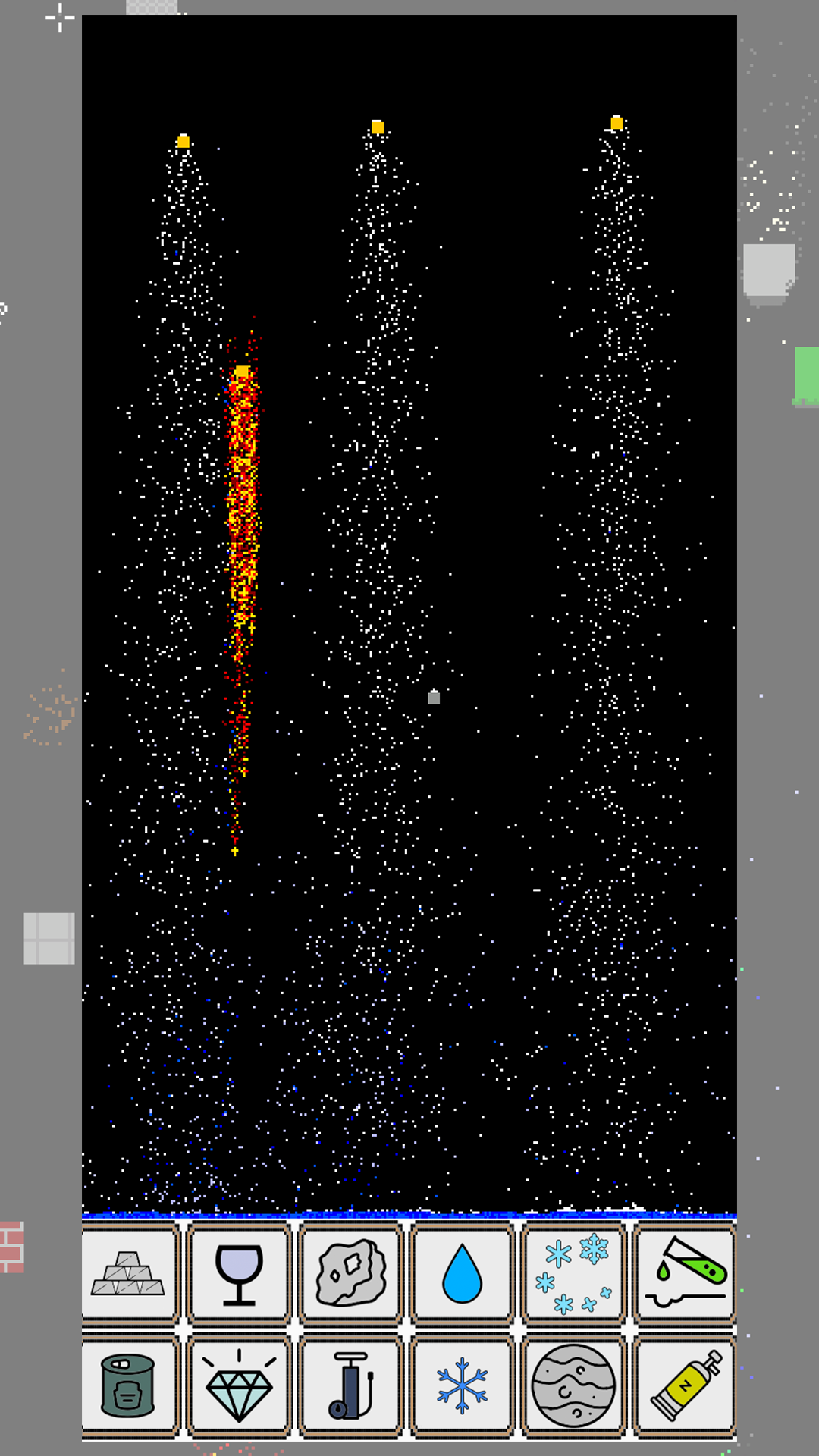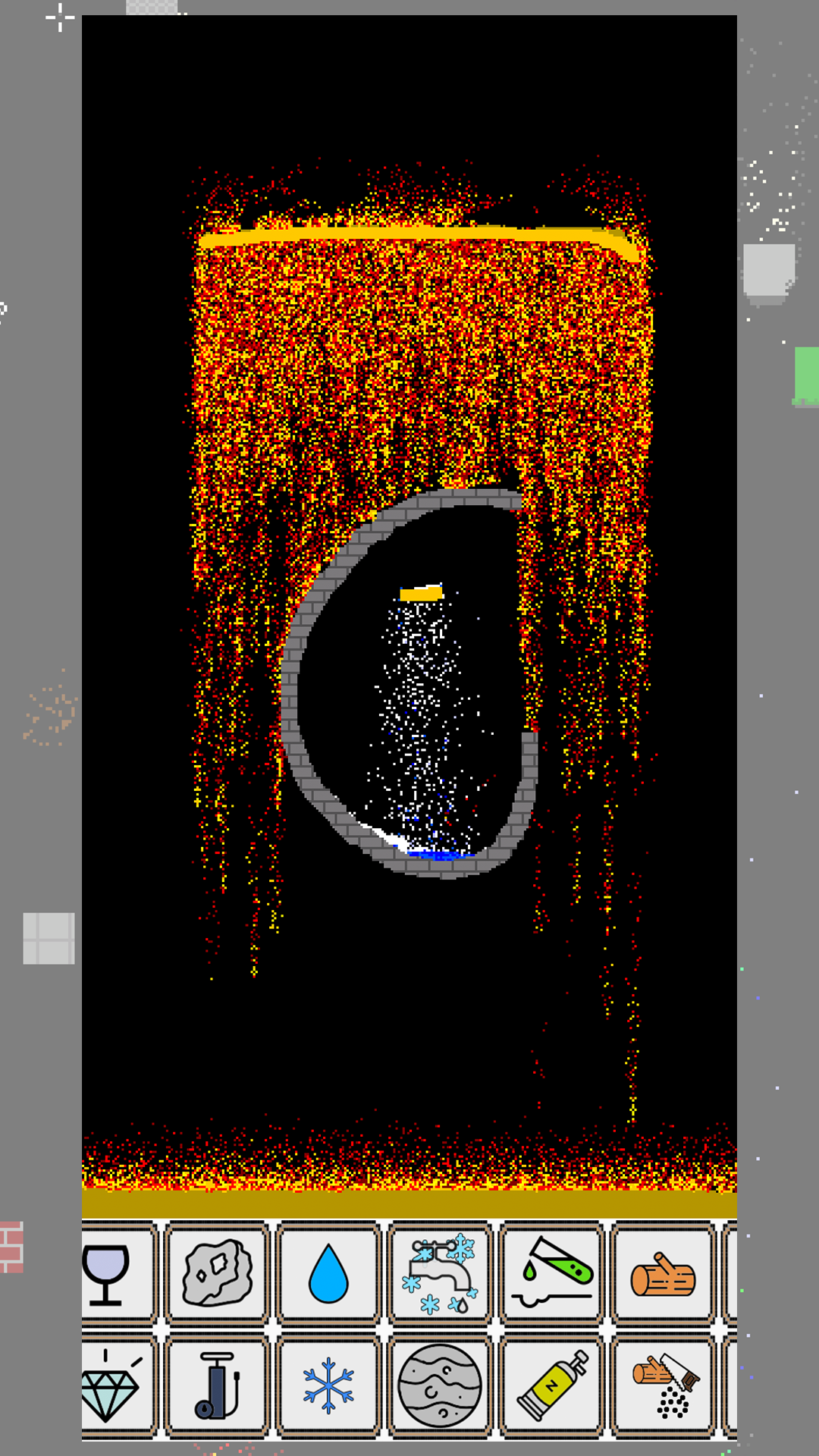 使用粉末模拟器,您可以创建和销毁所有东西,您会发现许多激动人心的实验:开水,下雨,着火和爆炸。。。。。。