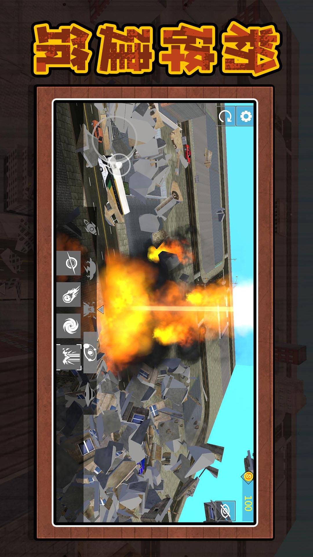 一款独特的模拟游戏,让玩家扮演一个拥有巨大力量的超级生物,可以自由地在城市中肆虐。游戏中,你可以选择不同的破坏方式,如地震、火山爆发、洪水等,来摧毁这个城市的建筑物和居民!