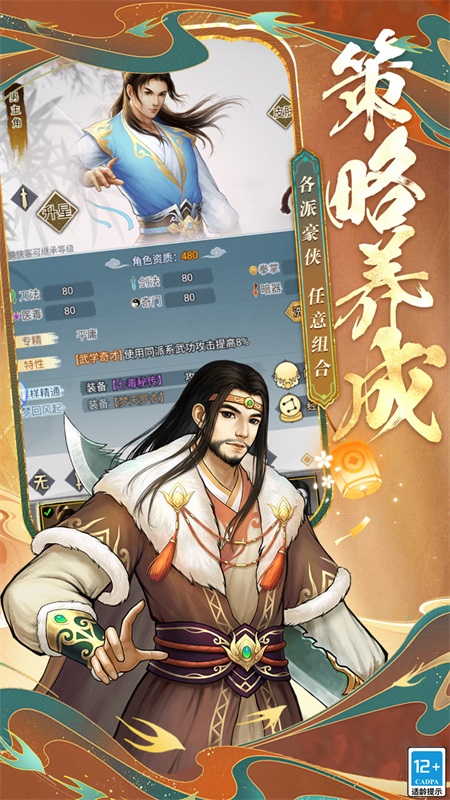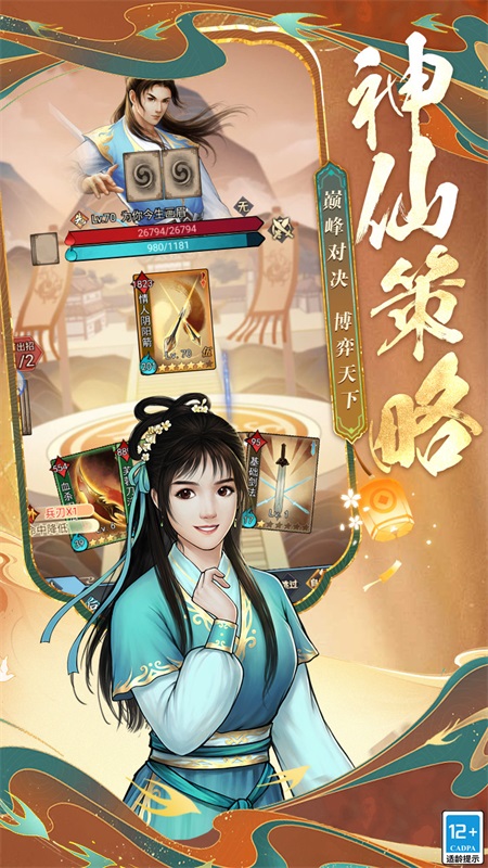 《大仙侠》是一款武侠风卡牌游戏,游戏以探索剧情为主要玩法,玩家通过完成游戏剧情任务,不断获得新的武功、提升等级,打倒企图颠覆武林的魔头,维护武侠世界的和平。近百种武功绝学,共有6大派系,高暴击的刀法,高伤害的剑法,控制内力的拳掌,能打能回的医毒,出奇不意的奇门,无限连招的暗器,派系间互相克制,伴随数十位可加入同伴的侠客,让战斗体验更加畅汗淋漓、轻松畅快。