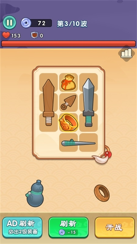 一款充满创意和趣味的单机休闲游戏。玩家将扮演一名道士,通过合成和进化背包中的各种武器,提升自己的战斗力,击败强大的敌人,完成一系列挑战。从飞刀、琵琶到各种奇特的武器,每种武器都有独特的攻击效果和合成路线。享受一段充满趣味和挑战的冒险之旅吧!