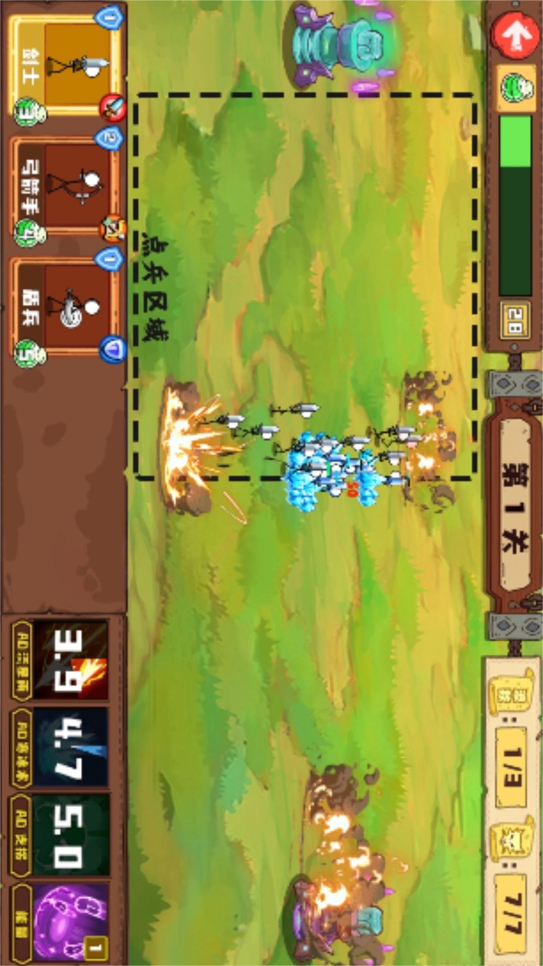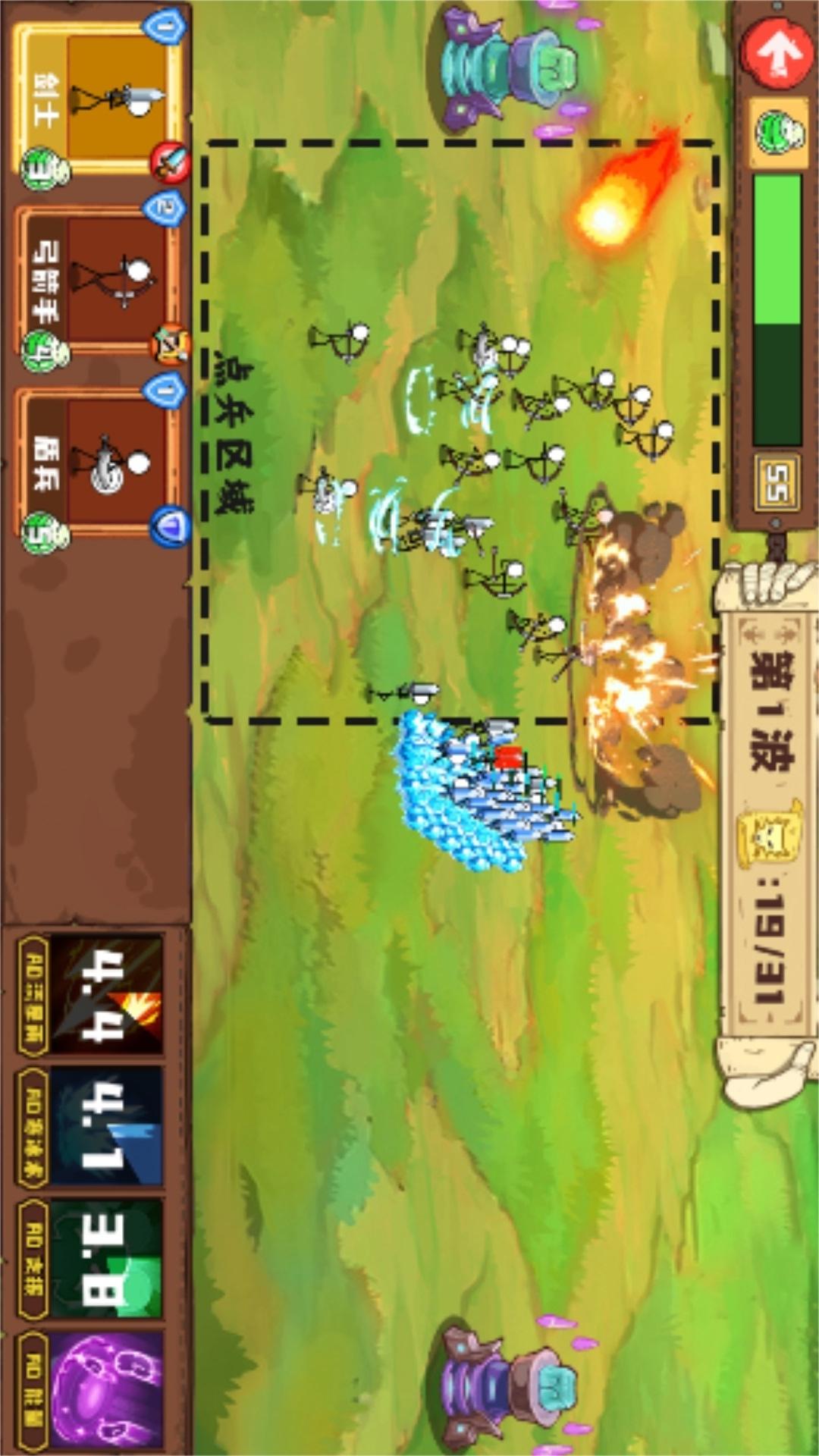 游戏中玩家将亲临激烈刺激的战场,指挥你的火柴人勇士进行作战,而且游戏中有着各种火柴人士兵可供训练!游戏中玩家需要组建自己的火柴人战队,同时还必须知道他们参加战争,只有灵活的操作才能顺利击败各种敌人。