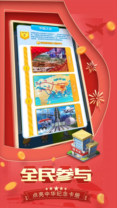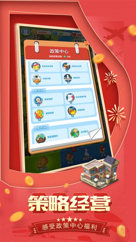 《家国梦》由腾讯游戏与人民日报联合推出,是一款展示新时代国家发展的,放置类城市建设游戏。在自主建设的城市内轻松乐翻天,用扶贫攻坚、绿色出行、减税降费等政策一步一步共建家乡和祖国,还能感受祖国大江南北的地域文化特色,诸如北京烤鸭、兰州拉面等等;更有300+张家乡实景绘图。快和朋友们一起,实施最合适的政策,完成城市发展任务。