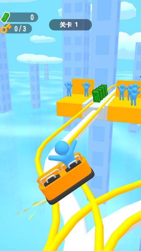 这是一款考验反应力的冒险跑酷类游戏,一个人坐享整个过山车,在过山车途中可以选择收集更多乘客,以获得更多乐趣!你通过路途所有的障碍,享受速度与激情的体验!