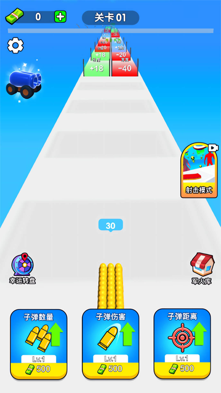 《子弹冲冲冲》是一款休闲解压的射击小游戏,收集尽可能多的子弹,跑到终点,击败终点boss获得奖励,快来体验吧!