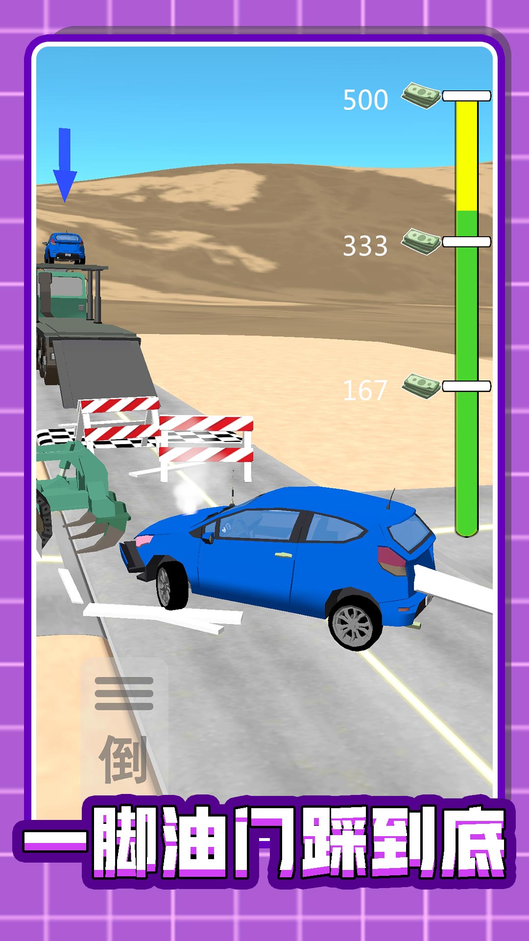 一款赛车闯关小游戏,在游戏中你将驾驶着你的爱车前往终点。游戏的玩法非常精彩刺激,途中你会遇见各种各样的障碍物和陷阱,这个时候就非常考验玩家的车技了,在游戏中还可以漂移。游戏玩法精彩有趣,感兴趣的小伙伴快来下载试一试吧。